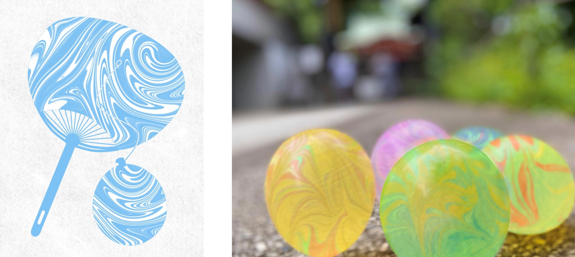 「たらす、まぜる、うつしとる-舞台は縁日!マーブリング体験-」 / グループ「あうん」(代表:石田 優奈 造形学部芸術文化学科3年)
