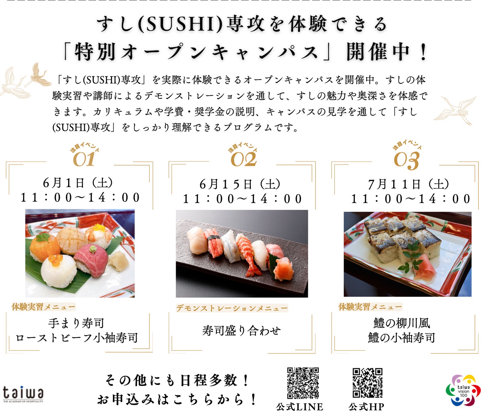 「すし(SUSHI)専攻」を体験できる特別イベントを実施中です。